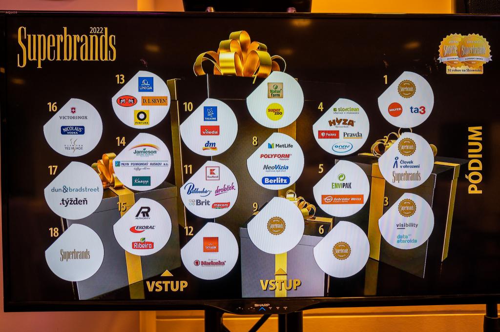 Superbrands Slovakia predstavili v rámci galavečera Tribute Event ocenené značky pre rok 2022. Na jubilejnom 10. ročníku slávnostného odovzdávania cien Superbrands si okrem firiem prevzala špeciálne ocenenie aj organizácia s výrazným prínosom pre spoločnosť.